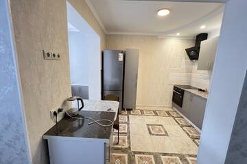 В квартире выполнен свежий ремонт. Есть вся необходимая мебель: диван, места для хранения, стол, стулья, гладильная доска.) Из техники: холодильник , духовой шкаф, вытяжка, стиральная машина, утюг, чайник.